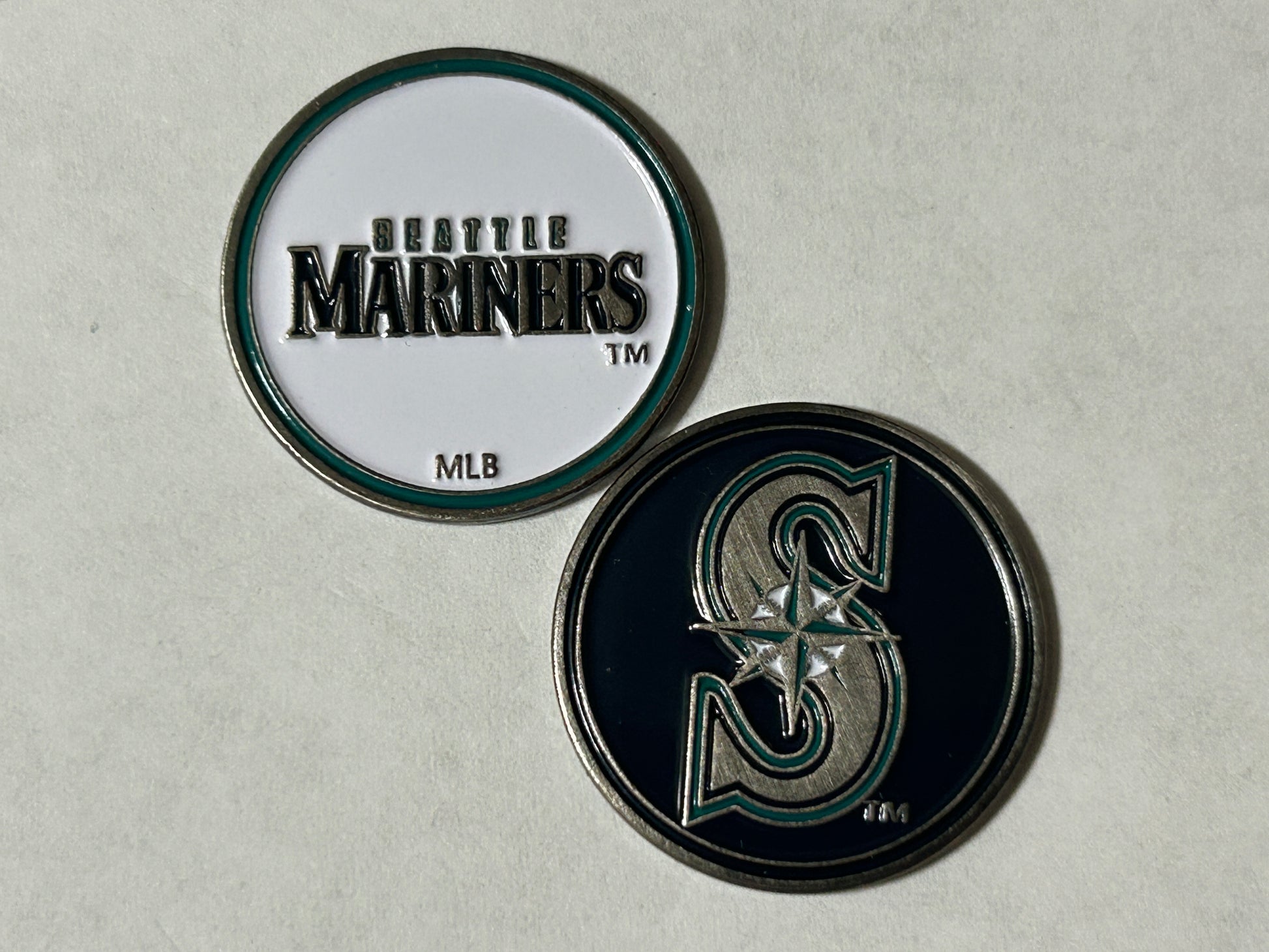 You will receive a 1" in Diameter Seattle Mariners Double Sided Magnetic Golf Ball Marker. Will work with Hat Clip's or Divot Tool's Very nice quality as the photo shows.